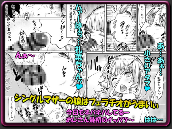 ≪あらすじ≫ まさか僕が結婚するなんてなー それも相手はシングルマザー 今日は、初めて彼女と娘さんを僕の家へ招待した 「私の部屋ここにするーっ♪」 好きな部屋選んで礼菜ちゃん 「おじさん好きーっ」 可愛いなぁ…うん、本当にカワイイ〜うッ!? 「さっそくシコシコしちゃう?」 二人きりになるとサワサワされるチ〇ポ あ…あ…あふ…ぅ 「早くママを主婦にしてあげてね☆」